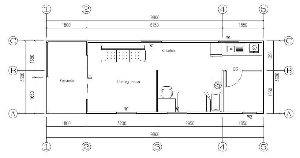 | Area | 9.8m(W)*3.3m(L)*2.6m(H) , 32.34 m2/Unit | |